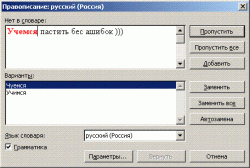 Ara Опубликовано 7 июня, 2005 Жалоба Поделиться Опубликовано 7 июня, 2005 Dr. Death: Надо русский учить, а не проверкой пользоваться. И русский не всем так легко дается. А насчёт такой проверки - это лишнее. Громоздкая и кропотливая работа. А эффект будет небольшой - проще и впрямь запастись орфографическим словарём. :) Ссылка на комментарий Поделиться на другие сайты Поделиться