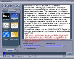 Лариса Опубликовано 20 февраля, 2007 Автор Жалоба Поделиться Опубликовано 20 февраля, 2007 Лариса: Если ещё не стёрла avi оригинал, то делай по человечески по новой. В Неро перекодируй avi в DVD и как я говорил, скачай видеоредактор MPEG Video Wizard DVD, в нём сделаешь редактирование,сохранишь и в Неро запишешь на диск. И качество будет отличное и мороки ни какой. MPEG Video Wizard DVD P.S. Вообще-то Неро,по крайней мере у меня,видит файл WMV. KANT, я не знаю почему, но я не могу перекодировать ни AVI, ни WMV, ни MPG в NERO. :) Оригиналы я сохранила. Спасибо за программу, сейчас ее скачиваю. :) Ссылка на комментарий Поделиться на другие сайты Поделиться