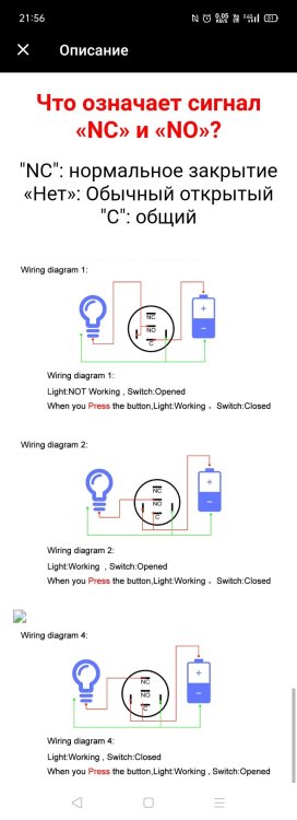 Подсветка кнопки это просто +и-. 2 крайних не подписаных контакта. Если на них подать напряжение, подсветка кнопки горит всегда, независимо вклчена кнопка или нет. Полярность неважна. С плафона тоже идёт штекер с 2 проводами. То есть наверное тоже +и -. Сейчас подключил штекер подсветки к С и NО. Вкл кнопку свет в салоне горит, выкл кнопку гаснет. Почему для включения - отключения подсветки кнопки нужно ещё провода, непонятно мне. Пока оставлю так, без подсветки кнопки, до весны. Как станет тепло возможно вернусь к этому вопросу.