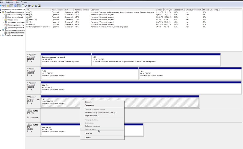 Неактивна удалить том В сети встречал способы восстановить всётаки. Из командной строки, есть ещё far, им тоже не понял как удалить. Знаний не хватает. Плохо что она в fat32. Большие файлы не пишет, хотел фильмы скидывать на неё. На сайте Transcend попробую поискать чтото... Еслиб не эти файлы, она вполне рабочая