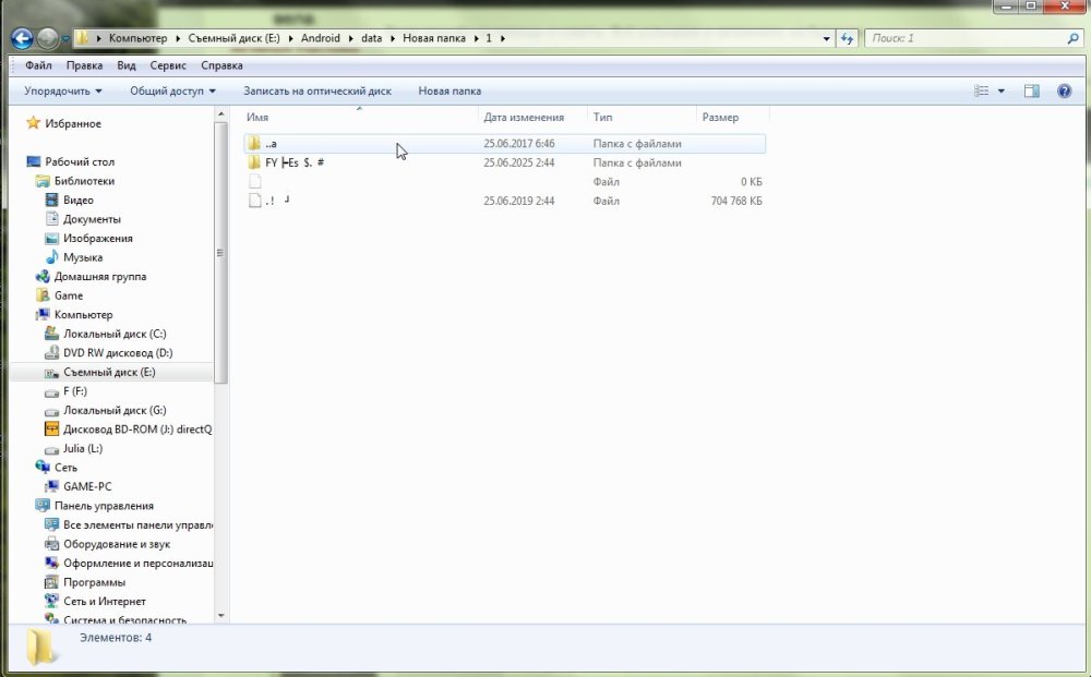 Здравствуйте. Не могу отформатировать флешку (карта памяти) , не даёт папка с крякозябрами. Удалить её не получается. Пробовал программы и через командную строку (не показывает короткие имена). Не так делаю наверно... Может кто знает как избавится от таких файлов? Поставил карту памяти в телефон. Показывает вообще какую-то...